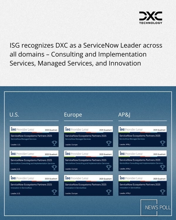 애슈번, 버지니아주, 2025년 9월 22일 -- 포춘 500대 기업(Fortune 500)이자 세계적인 기술 서비스 제공업체인 DXC 테크놀로지(DXC Technology)(NYSE 상장 코드: DXC)가 굴지의 다국적 기술 연구 및 자문 회사인 ISG의 Provider Lens™ 서비스나우 에코시스템 파트너스 2025(ServiceNow Ecosystem Partners 2025) 연구에서 미국, 아시아 태평양 및 중동, 유럽의 모든 부문 리더로 인정받았다. 이와 같은 위업에서는 엘리트 서비스나우 에코시스템 파트너(Elite ServiceNow Ecosystem Partner)로서 DXC의 위상뿐만 아니라, 가시적인 투자 효과를 보장하고, 심층적인 업계 전문성을 활용하며, 기술 개발에 끊임없이 투자해 고객에게 더 나은 서비스를 제공하는 DXC의 검증된 역량도 엿볼 수 있다.