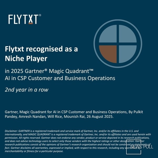 아랍에미리트, 두바이, 2025년 9월 30일 -- 통신•구독 기반 비즈니스용 엔터프라이즈 인공지능(AI) 선도기업 플라이텍스트(Flytxt)가 가트너(Gartner)가 발표한 2025 매직 쿼드런트(Magic Quadrant 2025) '통신서비스제공업체(CSP) 고객•비즈니스 운영용 AI 부문'에서 니치 플레이어(Niche Player)로 2년 연속 선정되는 영예를 안았다. 플라이텍스트 AI는 수조 건의 실제 데이터를 바탕으로 대규모로 훈련받은 모델로, CSP가 영업•마케팅, 제품•가격 책정, 고객 관리 전반에서 영향력 있는 의사 결정과 실행을 주도할 수 있게 특별히 설계됐다.
