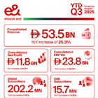 e&, 2025년 3분기 강력한 성장세 지속...연결 매출 29.2% 증가한 186억 디르함 기록