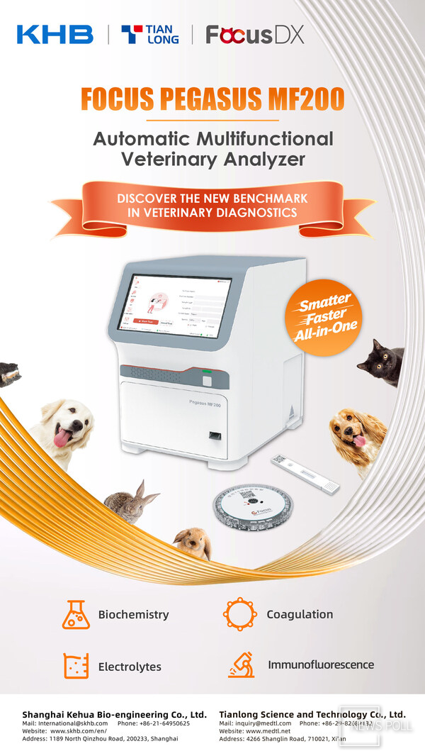 뉴스폴 이솔지 기자 | 시안, 중국 2025년 11월 14일 -- KHB 그룹의 자회사이자 수의 현장 진단(POCT) 솔루션 혁신 기업인 광저우 포커스 바이오테크놀로지(Guangzhou Focus Biotechnology Co., Ltd.)가 자동 다기능 수의학 분석기 'FOCUS PEGASUS MF200' 업그레이드 버전을 선보였다. MF200은 수의 진단 분야에서 효율성, 신뢰성, 접근성을 새롭게 정의하는 차세대 시스템이다.