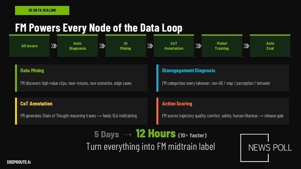 차오 최고기술책임자는 "2025년 말까지 딥루트닷에이아이의 자율주행 시스템이 탑재된 양산 차량 25만 대 이상을 성공적으로 출하했다"고 말했다. 이어 "파운데이션 모델은 딥루트닷에이아이의 차세대 자율주행 지원을 위한 핵심 초석이자 물리적 세계를 위한 근본적인 AI 프레임워크로 기능한다. 이 통합 아키텍처는 시스템이 단순한 실행을 넘어 복잡한 교통 환경을 이해하고 의사결정의 기저 논리를 설명하며 주행 행동을 평가할 수 있게 한다. 이러한 진화는 자율주행 시스템에 더욱 포괄적인 인지 및 의사결정 역량을 부여한다"고 덧붙였다.