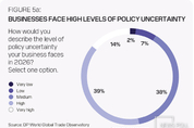 뉴스폴 김종익 기자 | 글로벌 무역 관측소 연례 전망: 관세, 비용 및 정책 불확실성에도 불구하고 94%가 2026년도 성장세를 2025년도와 유사 내지 상회할 것으로 예상 다보스, 스위스, 2026년 1월 21일 -- 글로벌 무역 전망은 취약해 보이지만 비즈니스 신뢰도는 그렇지 않다. 이는 DP 월드(DP World)의 신간 글로벌 무역 관측소(Global Trade Observatory, GTO) 2026 연례 전망 보고서(Annual Outlook Report 2026)의 요점으로, 응답자의 94%가 마찰과 변동성 증가에도 불구하고 2026년도 무역 성장세가 2025년도와 비슷하거나 이를 상회할 것으로 예상했다. 이번 결과는 다보스에서 열리는 세계경제포럼(World Economic Forum) 연례 회의를 앞두고 8개 산업 분야와 19개국에 포진한 3500명의 공급망 및 물류 고위 경영진을 대상으로 실시한 설문조사를 기반으로 한다. 전체적으로 54%는 무역 성장이 2025년보다 빠를 것으로 예상했고 40%는 동일할 것으로 내다봤다. 이는 53%가 정책 불확실성이 높거나 매우 높을 것으로 예상하고 9
